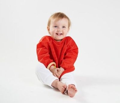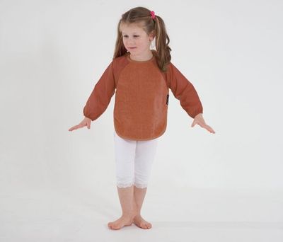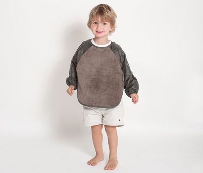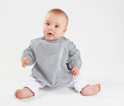 Mealtimes can get messy! Make clean up easier by protecting baby’s clothes with the Sleeved Wonder Bib®. Offering the most coverage in our range, keeping baby clean from wrist to waist. The front is made with our iconic 100% cotton towelling for quick absorbency. It’s backed with water-resistant nylon to keep baby dry underneath, with the same material used for the sleeves. It has an adjustable dome closure on the neckline, so you don’t need to lift the bib over their head; instead unclip and pull down at the sleeves to contain the mess.