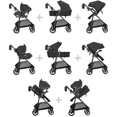- FLEXIBLE TRAVEL SYSTEM: The Evenflo Urbini Omni Plus Modular Travel System offers 6 convenient modes of use. The car seat and stroller combo featuring the Lite Max Infant Car Seat and base , is infused with parent- and child -friendly features.