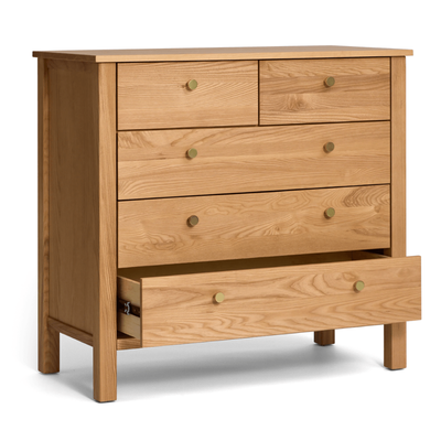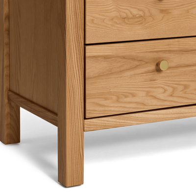 The Mackenzie Dresser, is made from ethically sourced Ash timber from Europe and features brass knobs. Whether paired with our matching Mackenzie Cot or seamlessly integrated with other furniture and décor in your home, its single-tone versatility makes styling a breeze.