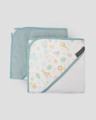 Each pack includes two beautiful towels – one solid color and one charming pattern – elegantly tied with a ribbon, making them perfect for gifting. Mindfully crafted and built to last with reinforced edges, these versatile towels are ideal for bath time, pool days, or as a cozy wrap. Machine washable for easy care, they're simple, practical essentials for everyday life with your baby.