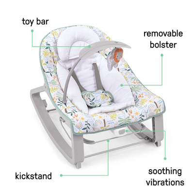 - 3 modes: Bouncing, rocking or stationary with rear kickstand