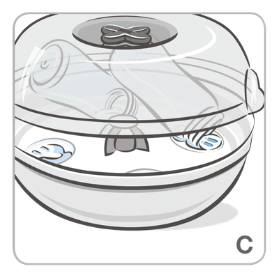 With just three parts, the NUK Micro Express Plus Microwave Steam Steriliser is simple to use and fits into all standard microwaves with a minimum interior of 187mm in height and 280mm in both width and depth. At the same time, it is compatible and can be used with standard bottles of all shapes and sizes in microwaveable material. It has a transparent lid and now comes with a locking system. After the sterilising process is over, the NUK Micro Express Plus Microwave Steam Steriliser can be easily cleaned with a cloth – but it is also dishwasher safe.