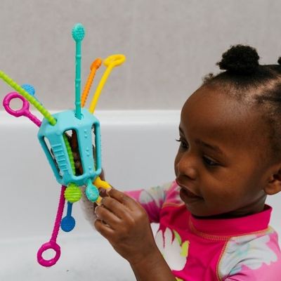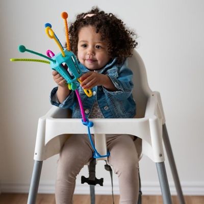 Zippee is a silicone activity toy perfect for 18months+. Little fingers can't resist Zippee's flexible, textured cords and easy-to-hold grips. Babies and toddlers love pulling Zippee's cords from side to side and hearing and feeling the various sounds and vibrations the cords make.