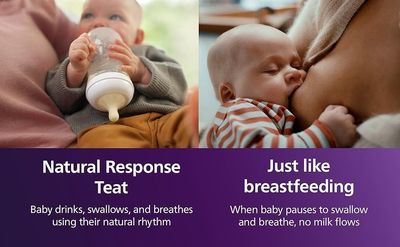 The Natural Response Nipple works with your baby's natural feeding rhythm, making it easy to combine breast feeding and bottle feeding. The nipple has a unique opening which only releases milk when the baby actively drinks. So when they pause to swallow and breathe, the milk pauses too.