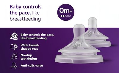The wide, soft and flexible nipple is designed to mimic the shape and feel of a breast, helping baby to latch on and feed comfortably. Anti-colic valve is designed to keep air away from baby's tummy during feeding, to help reduce colic and discomfort. Feed their way, parent your way.