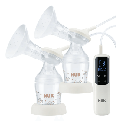 Comes with a 150ml NUK Perfect Match baby bottle and supports optional double pumping with an extension kit. Also compatible with other NUK bottles for flexible use.