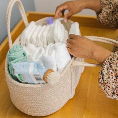 The ClevaMama Baby Changing Caddy is the ideal way to keep all your changing items organised. Made from natural cotton rope, it has a stylish, contemporary design to blend perfectly with your nursery.