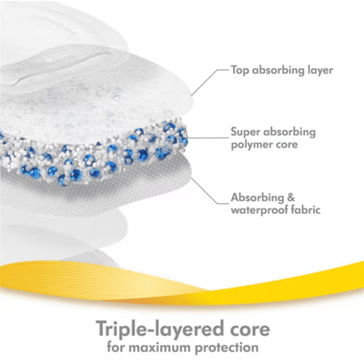 - Keeping you dry, no matter what: These Ultra-breathable Nursing Pads have been designed with maximum absorbency. They keep you dry and the side leak guard safely contains breast milk for extra security. The triple-layered absorbent core and waterproof back layer help protect your clothes.